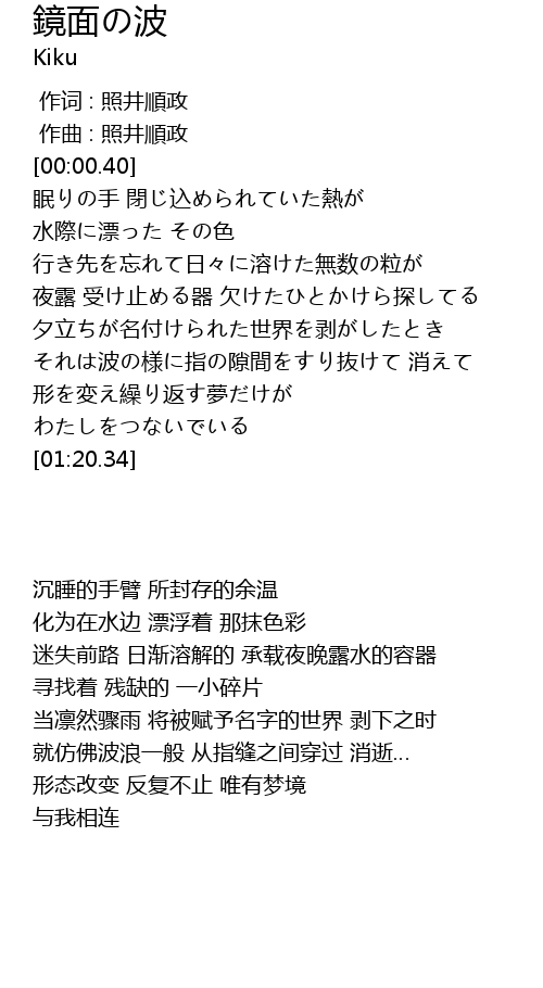 | [00:33.49] | 夜露 受け止める器 欠けたひとかけら探してる |