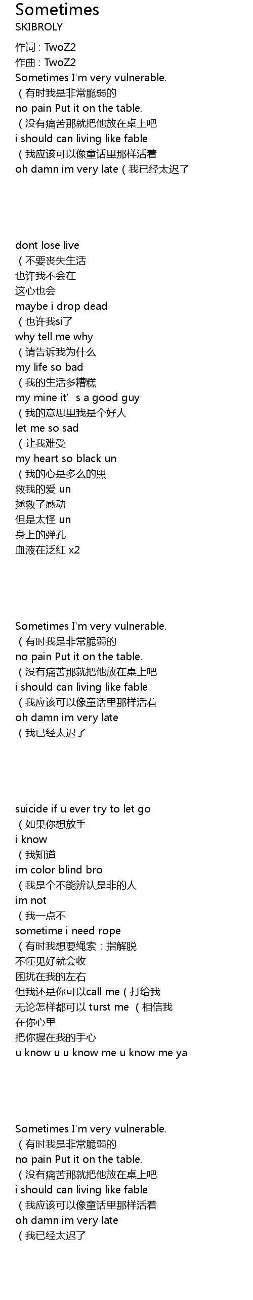 | 作词 : TwoZ2 | |
