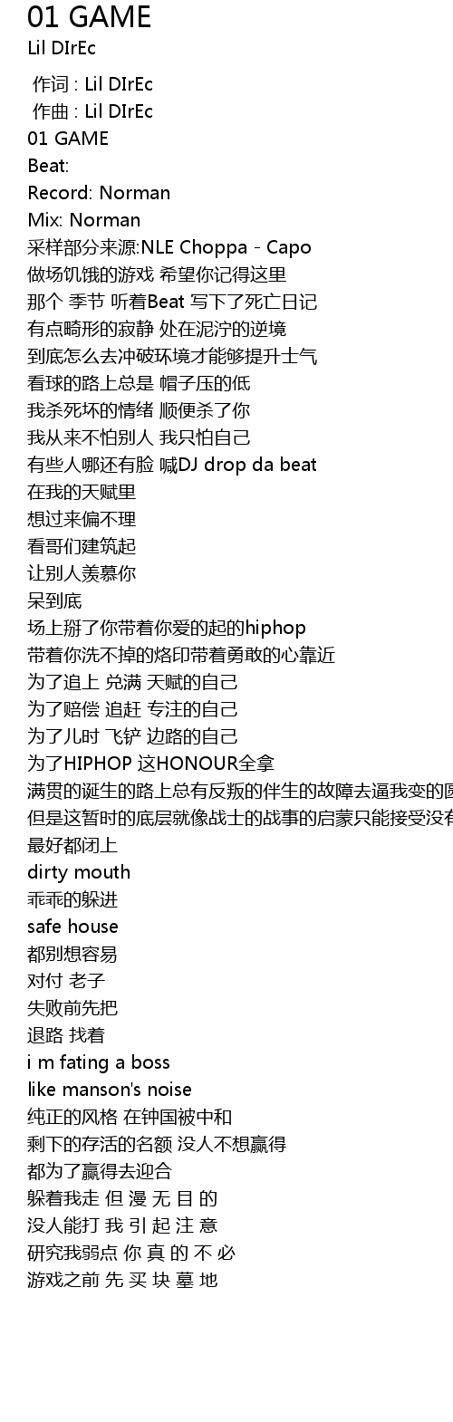| [00:00.000] | 作词 : Lil DIrEc |