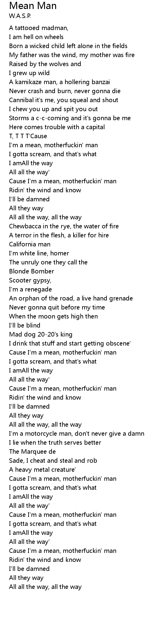 Cause I'm a mean, motherfuckin' man |