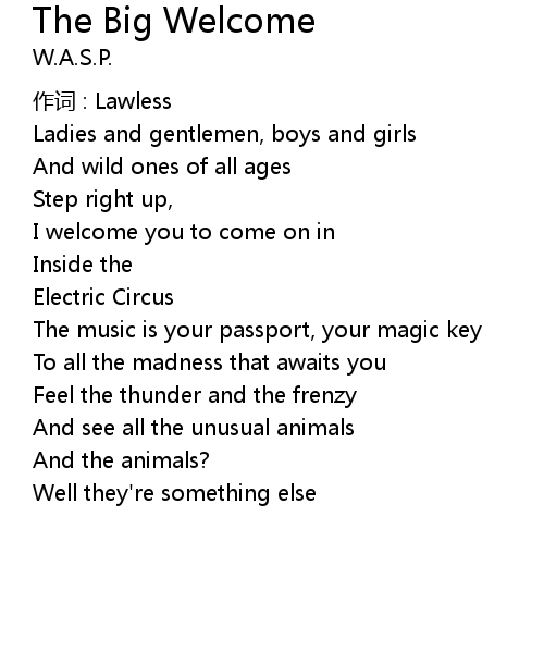 | Song | The Big Welcome |