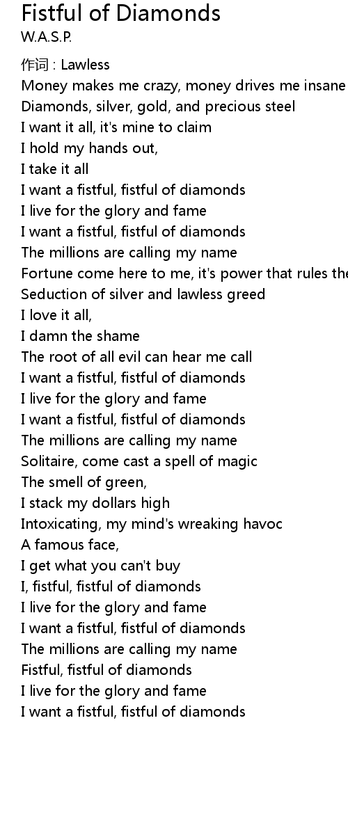 | I want a fistful, fistful of diamonds | |