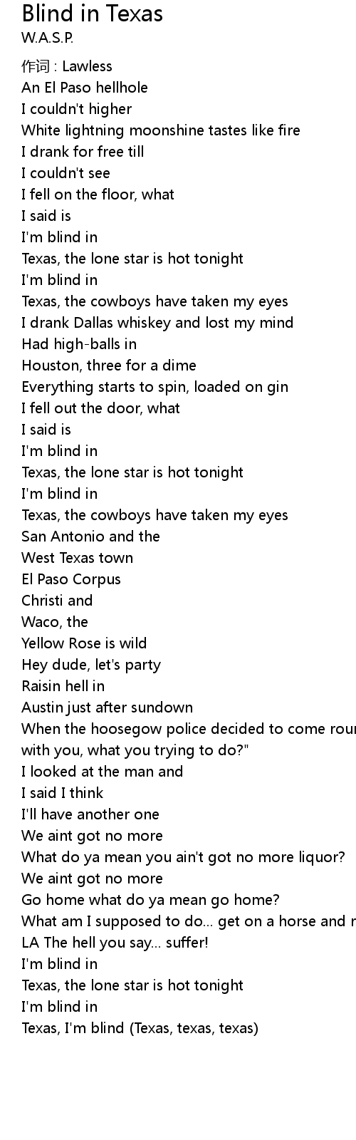 | Texas, I' m blind Texas, texas, texas |