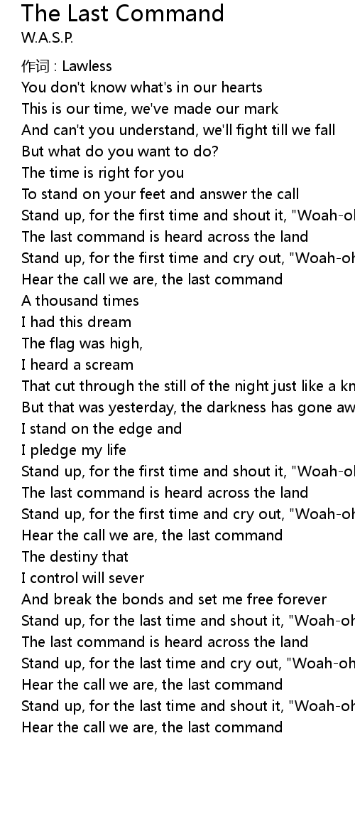 | Hear the call we are, the last command | |