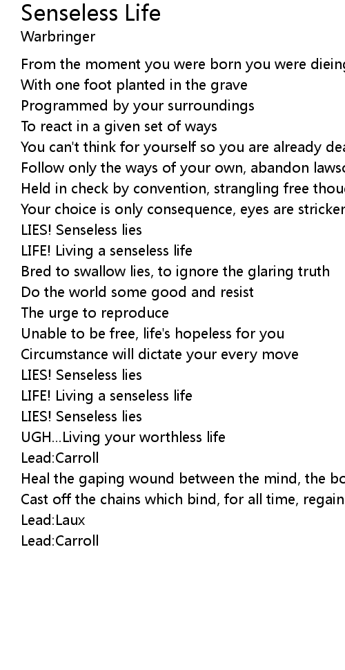 LIFE! Living a senseless life |