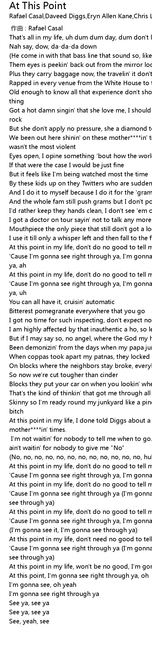| [03:48.568] | At this point, I' m gonna see right through ya, oh |