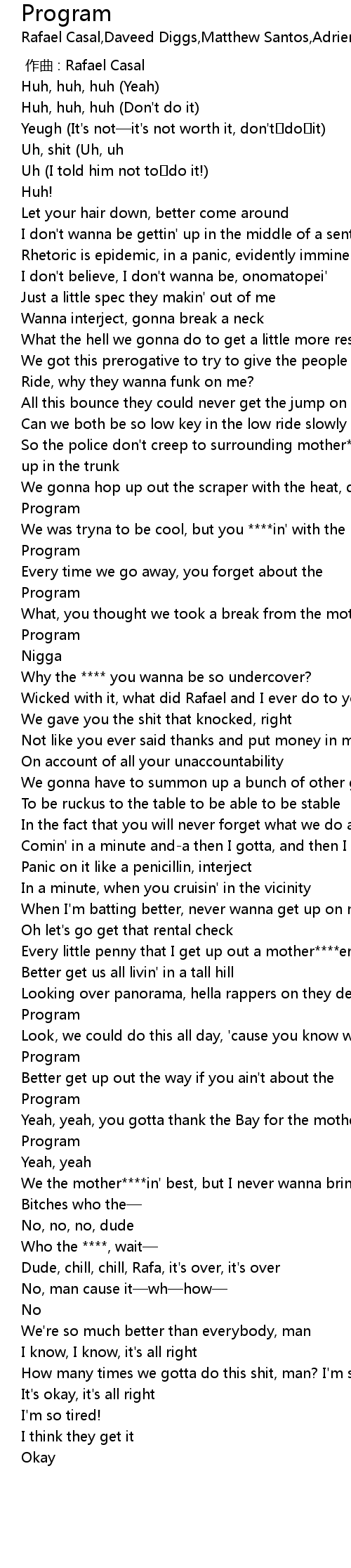 | [01:07.856] | Why the **** you wanna be so undercover? |