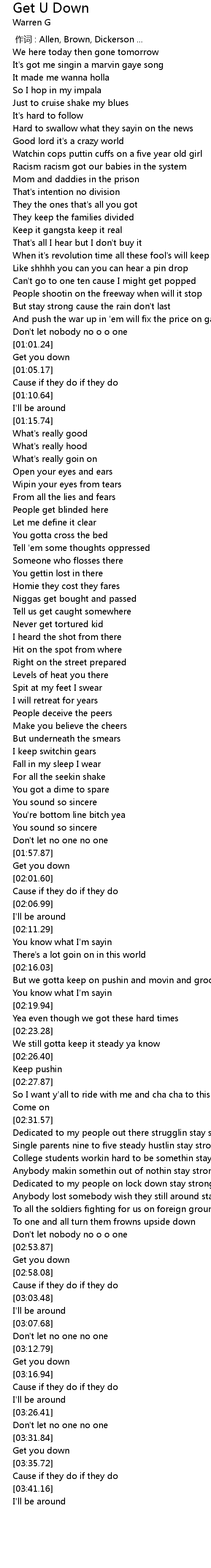 | [02:41.47] | Dedicated to my people on lock down stay strong |