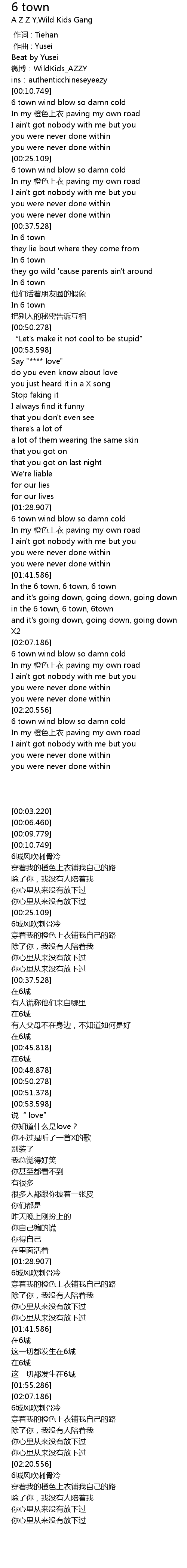 | [01:42.386] | In the 6 town, 6 town, 6 town |