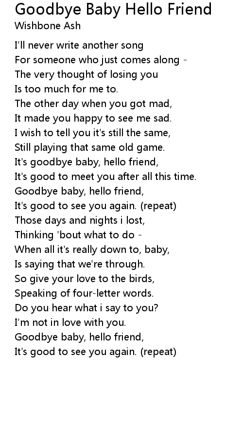 Goodbye baby, hello friend, |