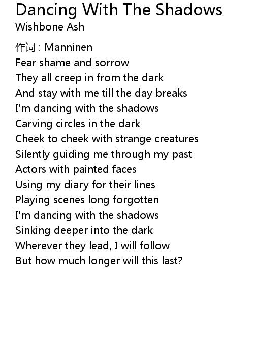 | I'm dancing with the shadows | |