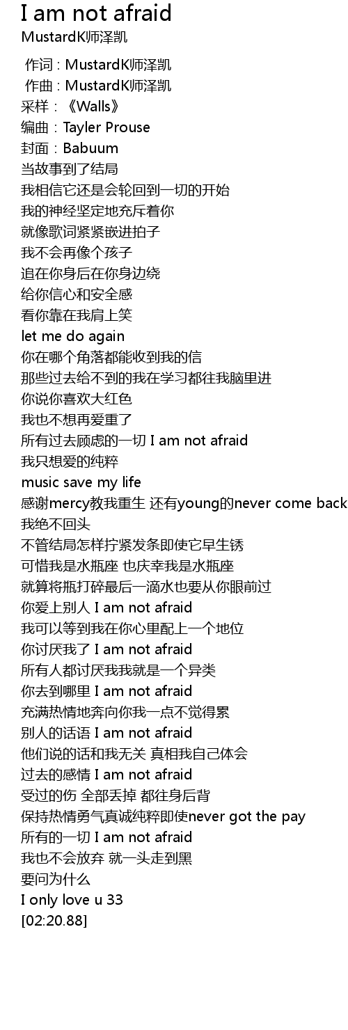 | [00:00.00] | 作词 : MustardK师泽凯 |