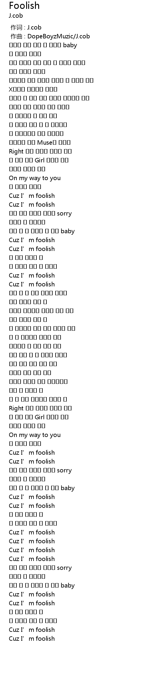 | [00:00.000] | 作词 : J.cob |