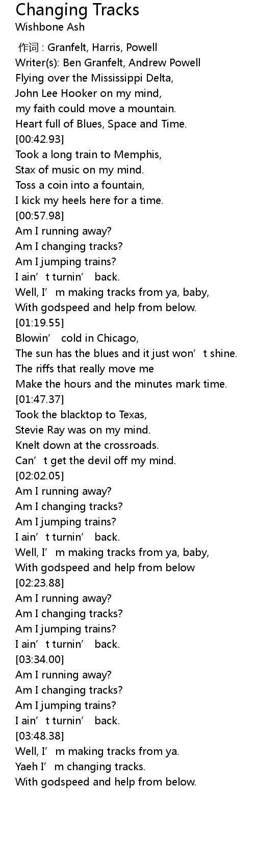 | [02:06.07] | Am I changing tracks? |