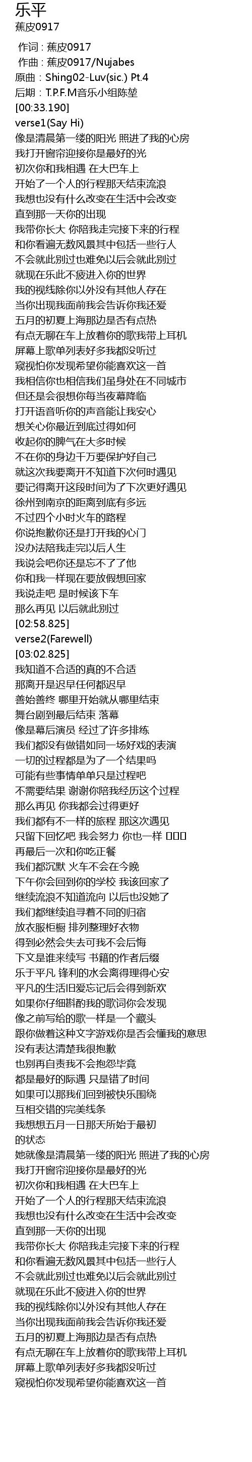 | [00:00.000] | 作词 : 蕉皮0917 |