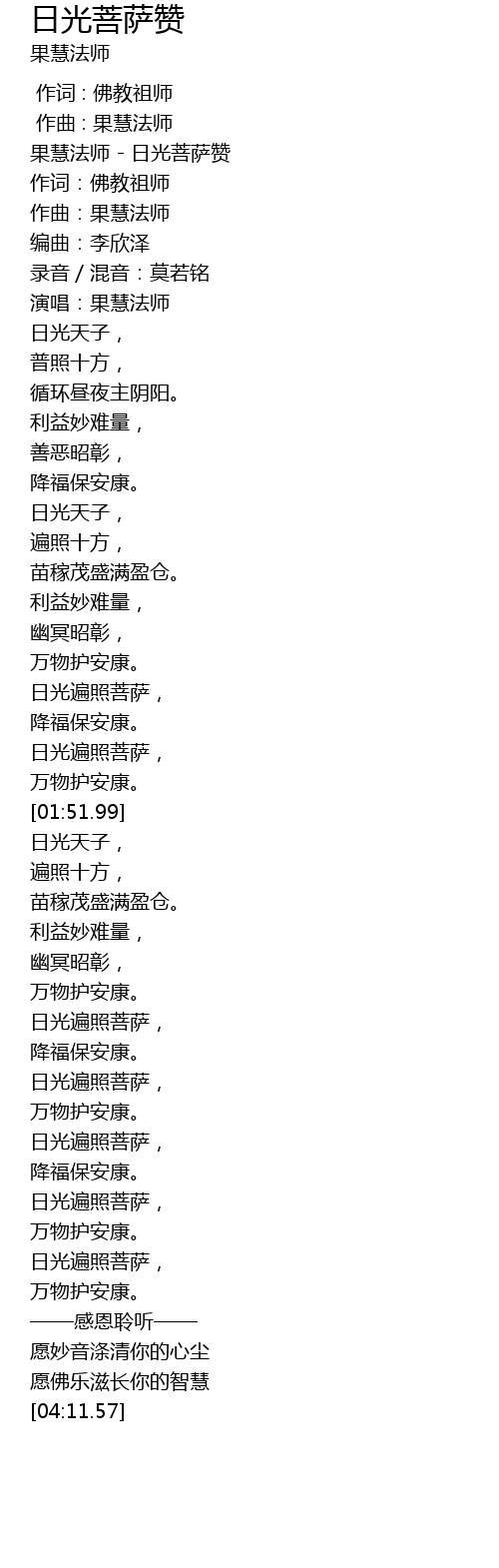 | [00:00.76] | 果慧法师 - 日光菩萨赞 |