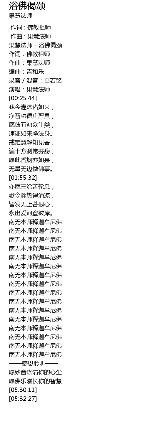 | [00:00.26] | 果慧法师 - 浴佛偈颂 |