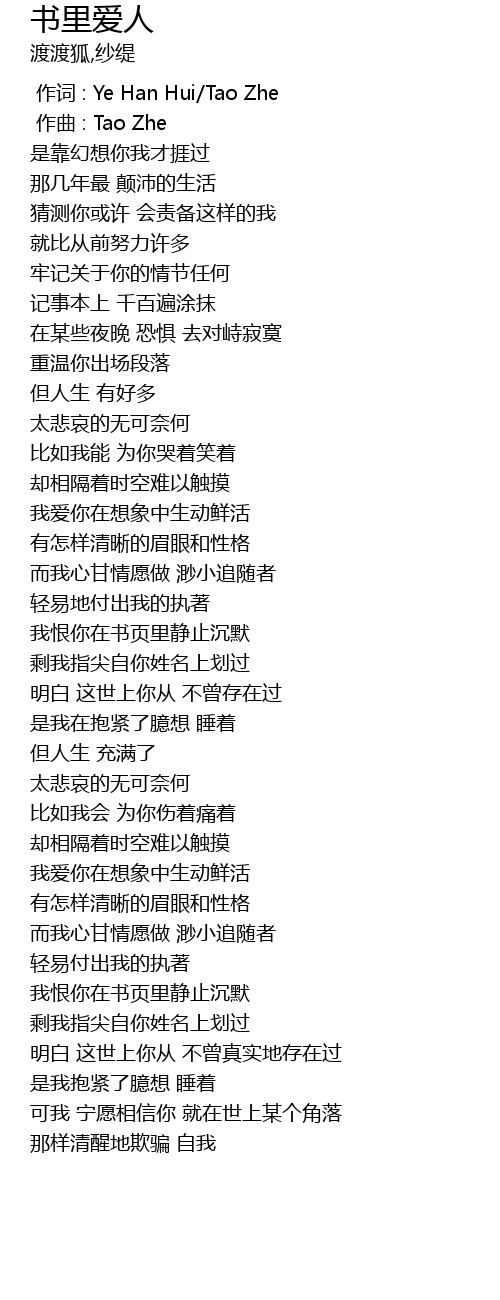 | [00:00.00] | 作词 : Ye Han Hui/Tao Zhe |