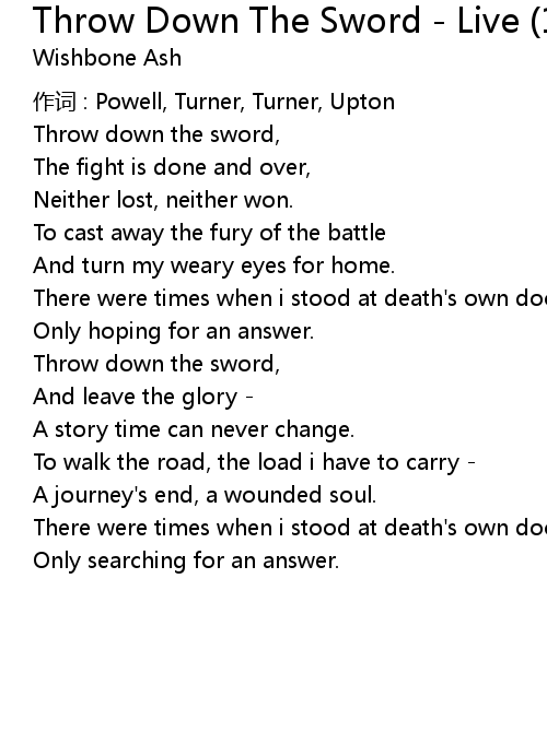 | Song | Throw Down The Sword - Live (1973/Newcastle City Hall) |