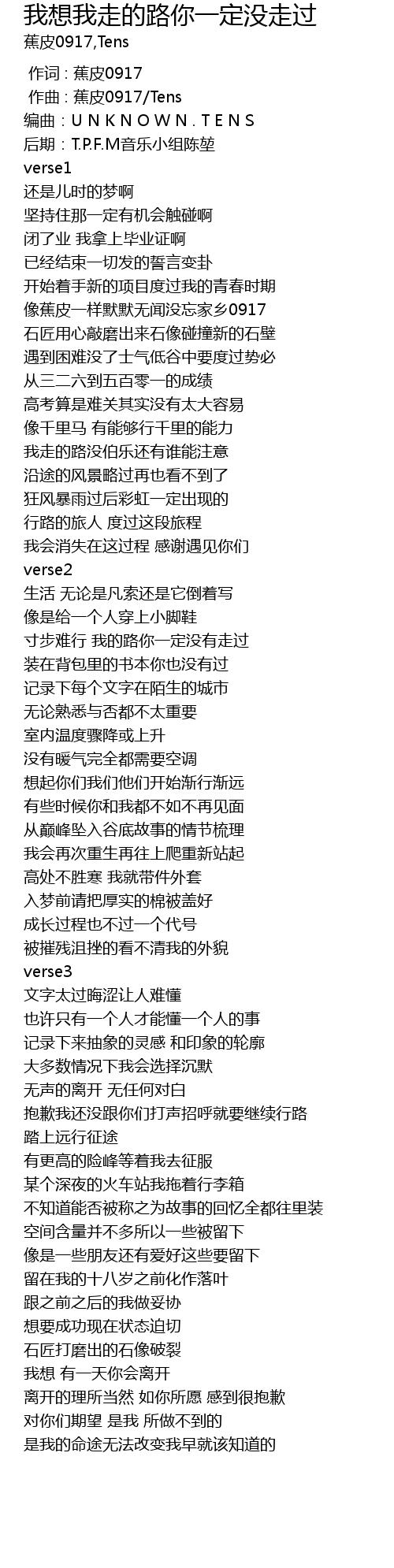 | [01:54.191] | cùn bù nán xíng wǒ de lù nǐ yí dìng méi yǒu zǒu guò |