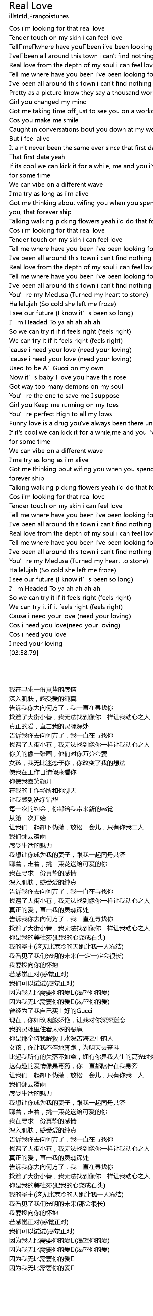 | [00:29.54] | Real love from the depth of my soul i can feel love |