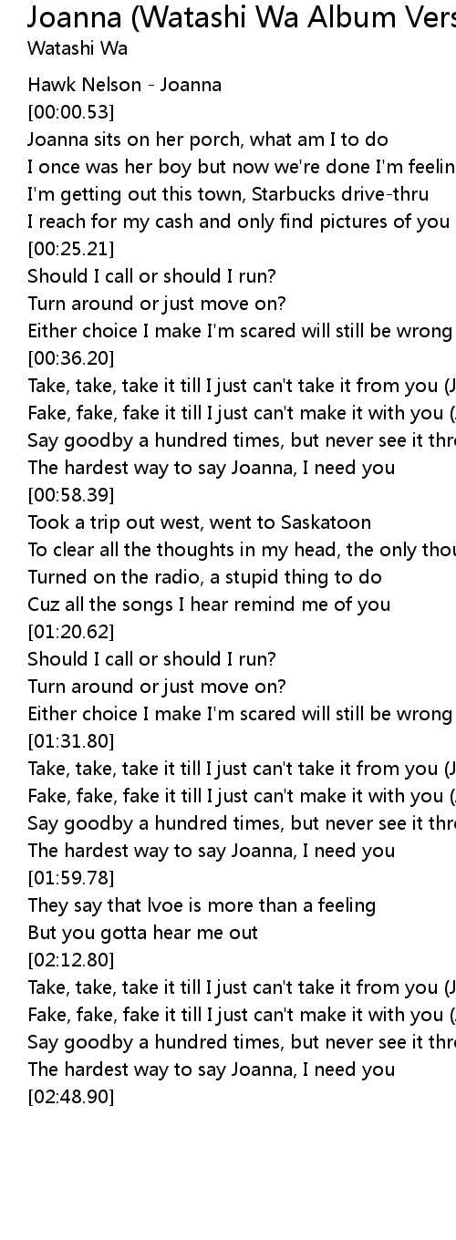 [02:13.40] Take, take, take it till I just can't take it from you (Joanna)
