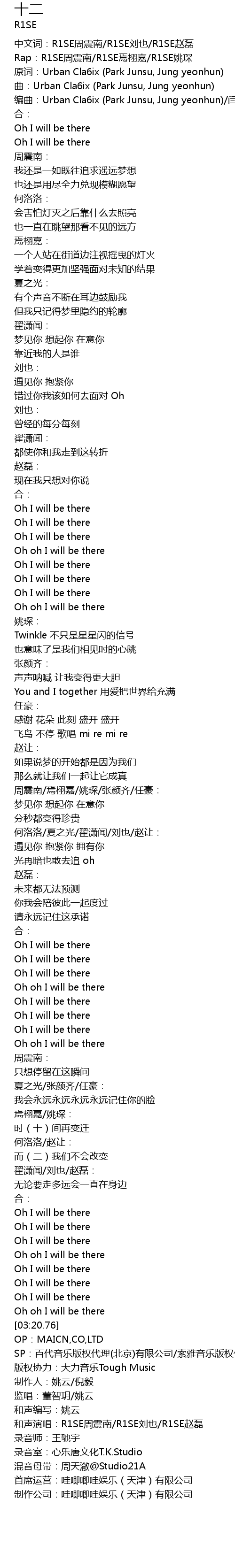 | [00:00.77] | Rap:R1SE周震南/R1SE焉栩嘉/R1SE姚琛 |