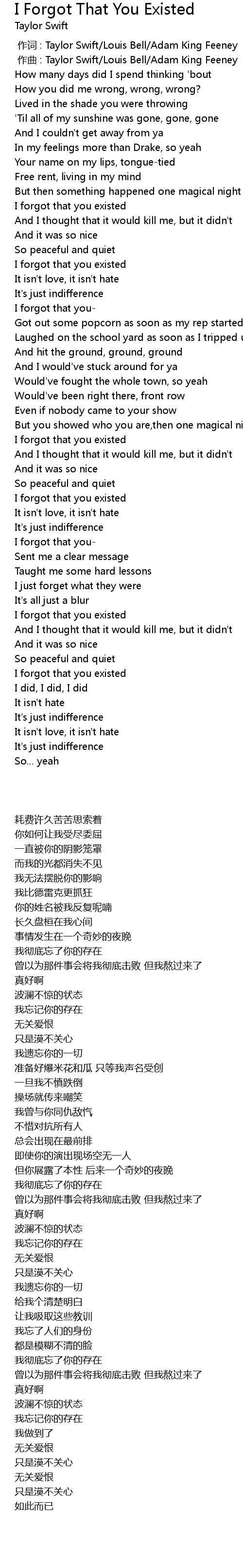 | [00:34.50] | I forgot that you existed |