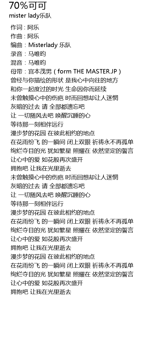 | [00:03.505] | 编曲:Misterlady 乐队 |