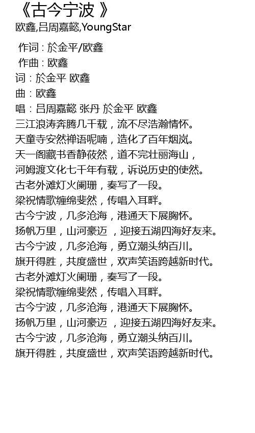 | [03:58.320] | 古今宁波,几多沧海,勇立潮头纳百川。 |