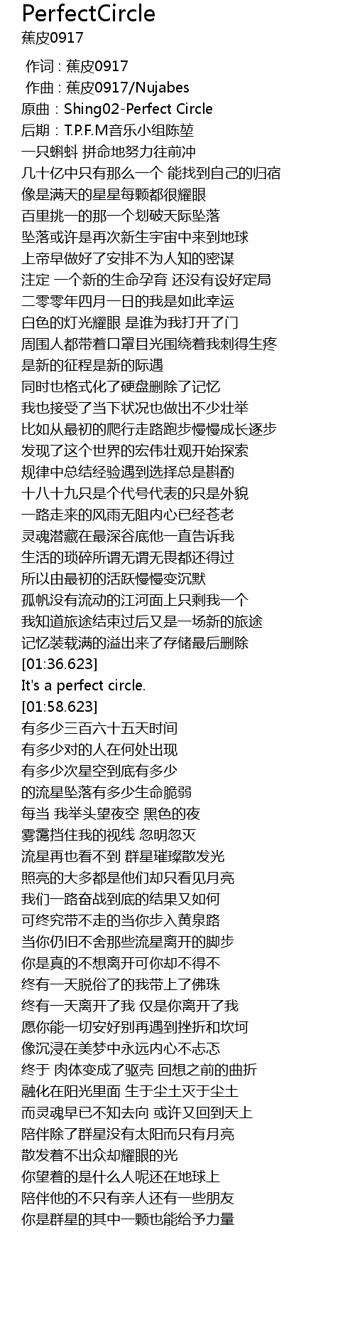 | [00:11.684] | 原曲:Shing02-Perfect Circle |