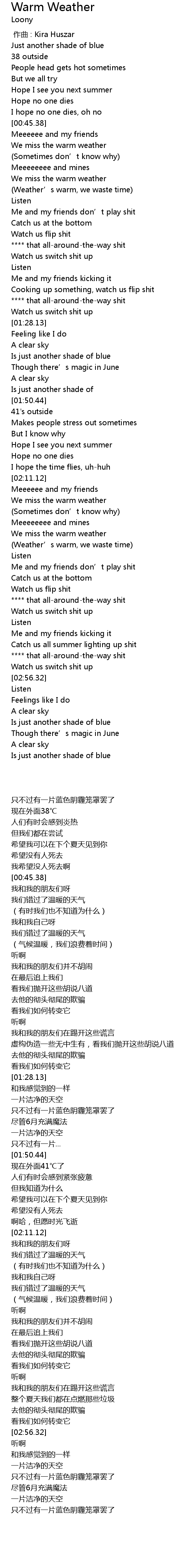 | [02:32.38] | (Weather’s warm, we waste time) |