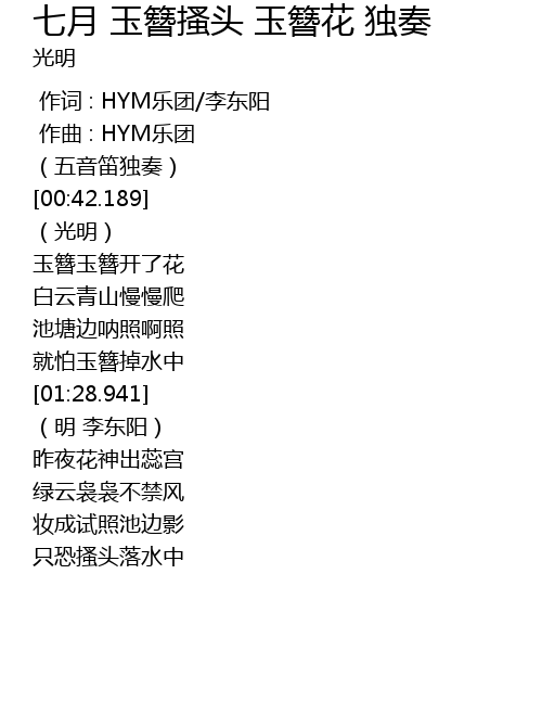 | [00:00.000] | 作词 : HYM乐团/李东阳 |