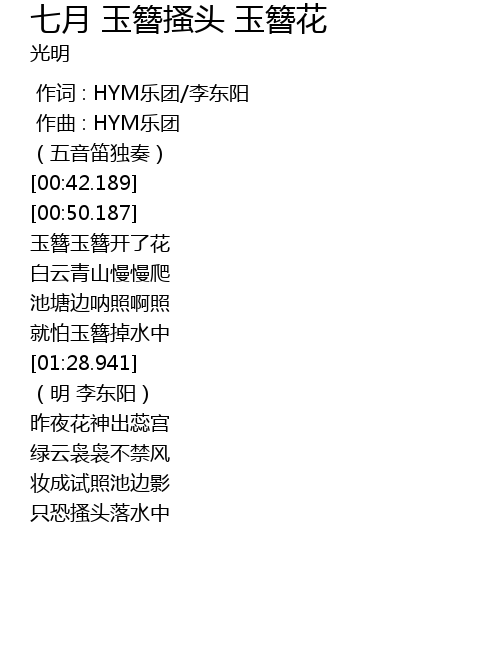 | [00:00.000] | 作词 : HYM乐团/李东阳 |