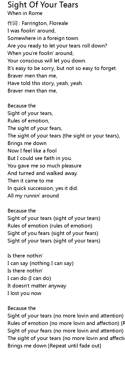 | Sight of your tears no more lovin and attention Sight of your tears | |