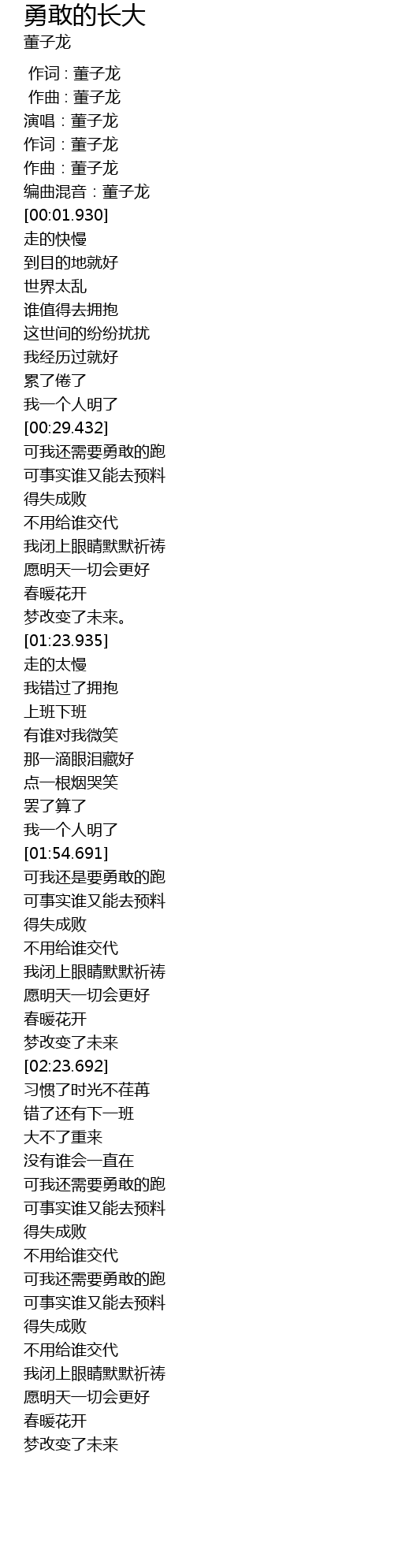 | [00:30.929] | 可我还需要勇敢的跑 |