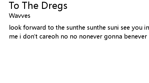 look forward to the sunthe sunthe suni see you in a lighta lighta lightyou see me i don't careoh no no nonever gonna benever gonna beoh no no nonever gonna be