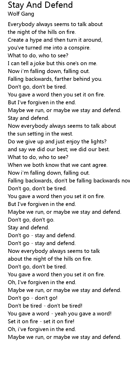 Stay And Defend Lyrics