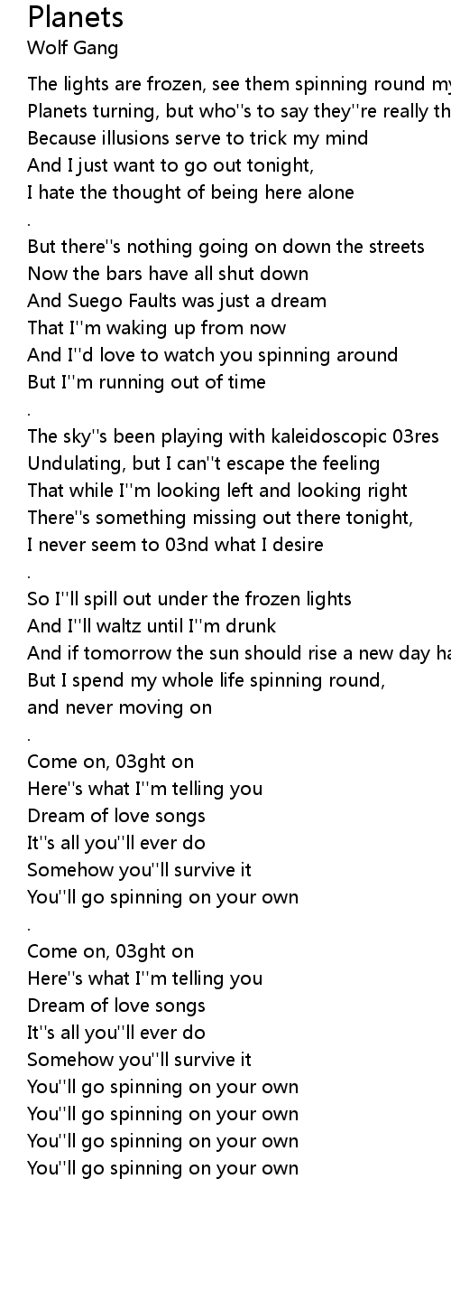 You''ll go spinning on your own |