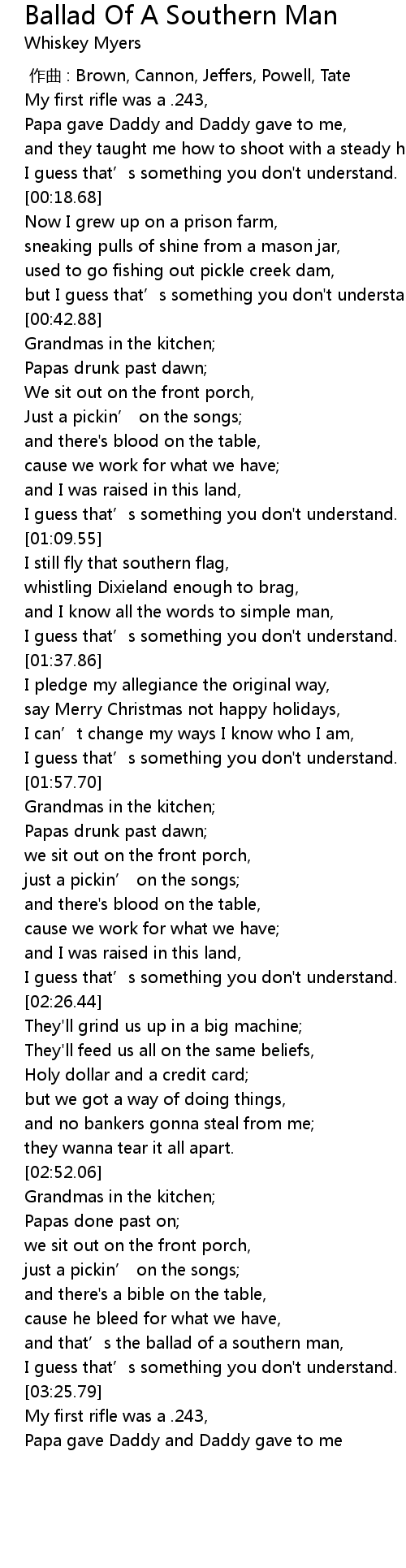 | [03:15.55] | and that' s the ballad of a southern man, |