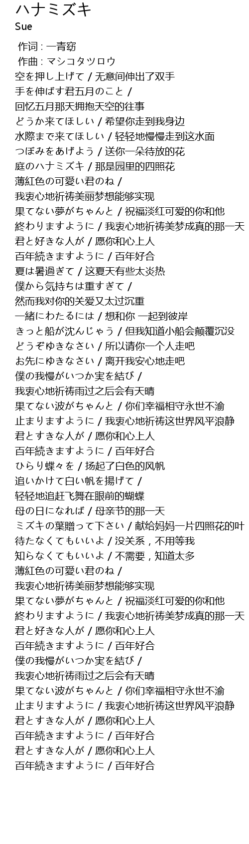 | [04:50.683] | 君とすきな人が / 愿你和心上人 |