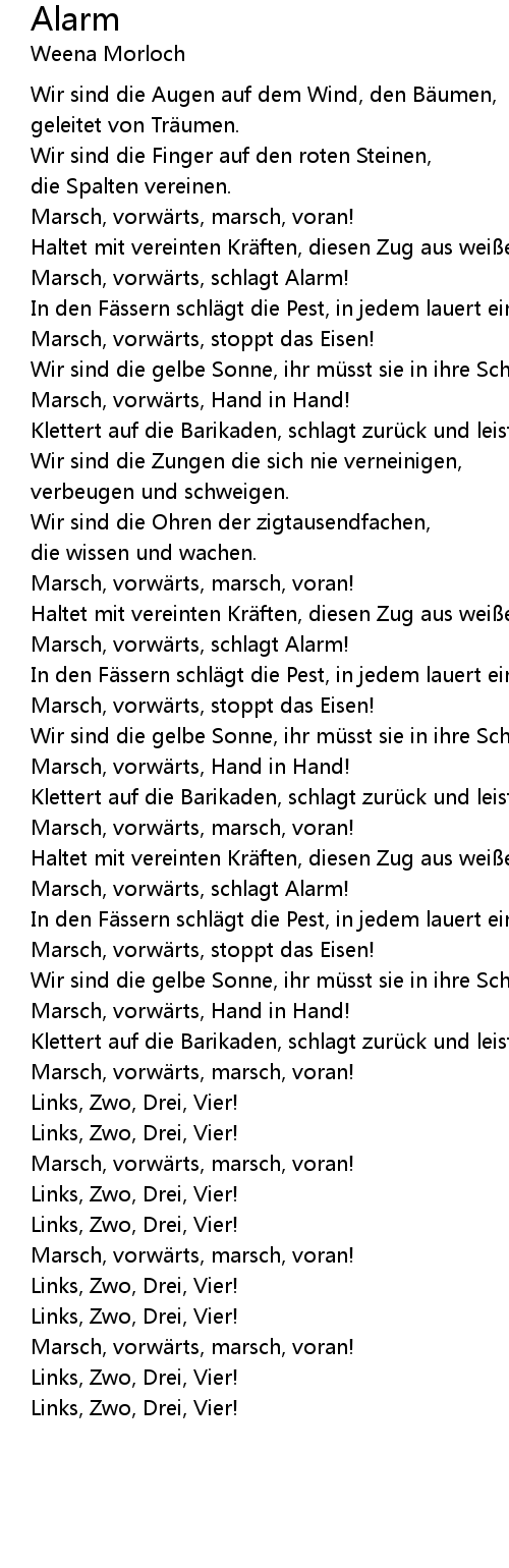 | Haltet mit vereinten Kr ften, diesen Zug aus wei en S rgen an! | |