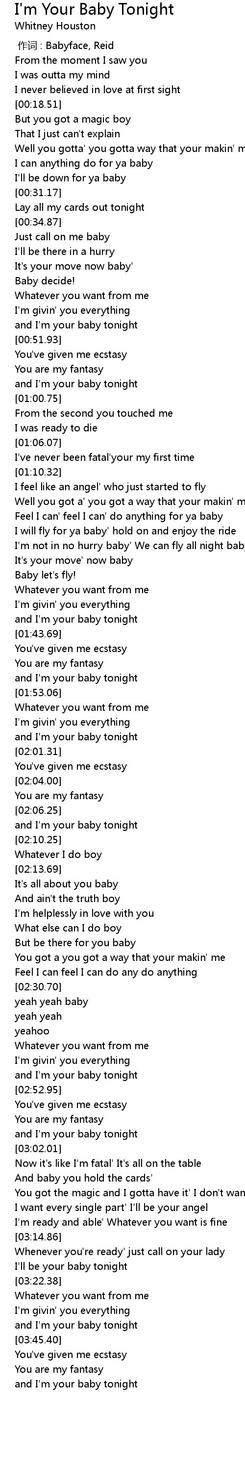 | [02:59.38] | and I' m your baby tonight |