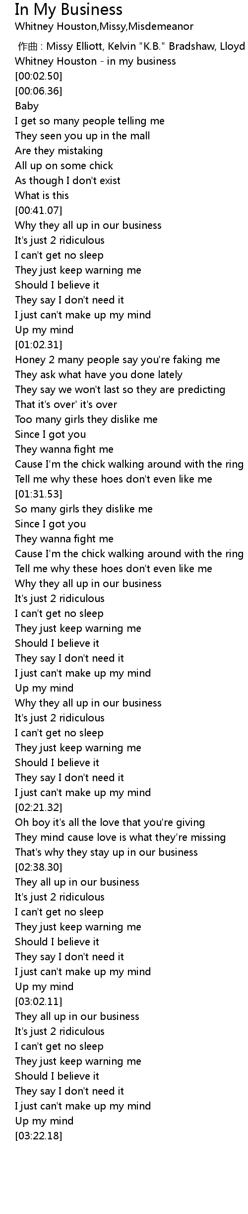 | [00:00.00] | 作曲 : Missy Elliott, Kelvin "K.B." Bradshaw, Lloyd "Spec" Turner |