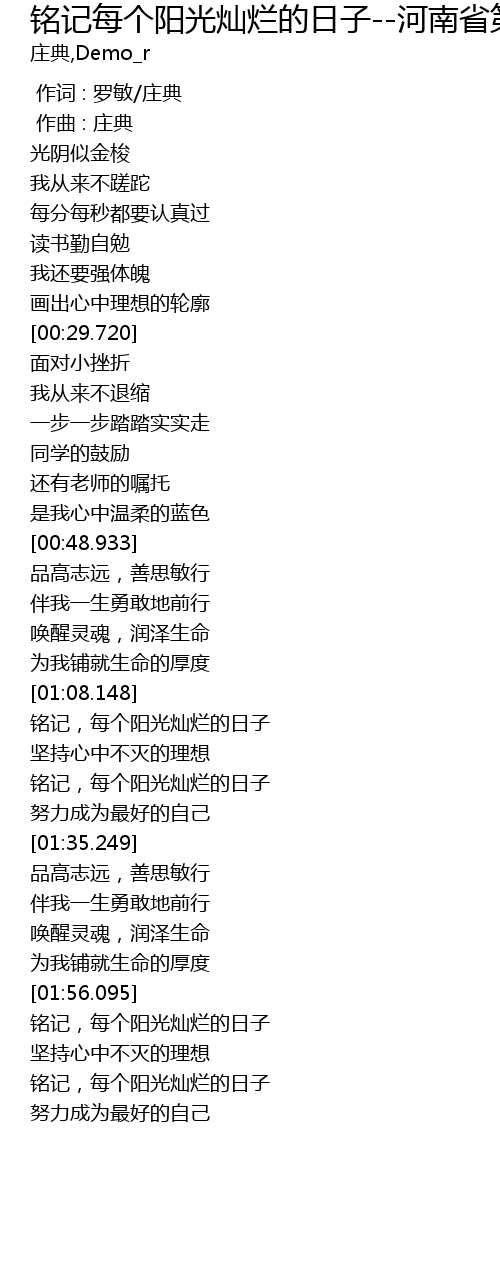 | [01:56.737] | 铭记,每个阳光灿烂的日子 |