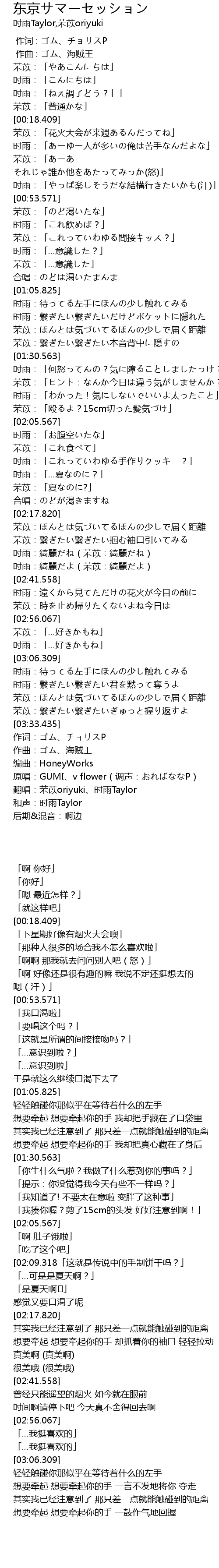 | [03:39.432] | 翻唱:芣苡oriyuki、时雨Taylor |