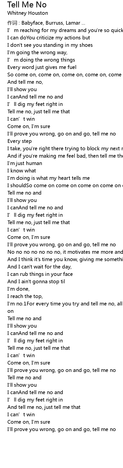 | I' m no. 1For every time you try and tell me no, all it makes me keep on, keep it on | |
