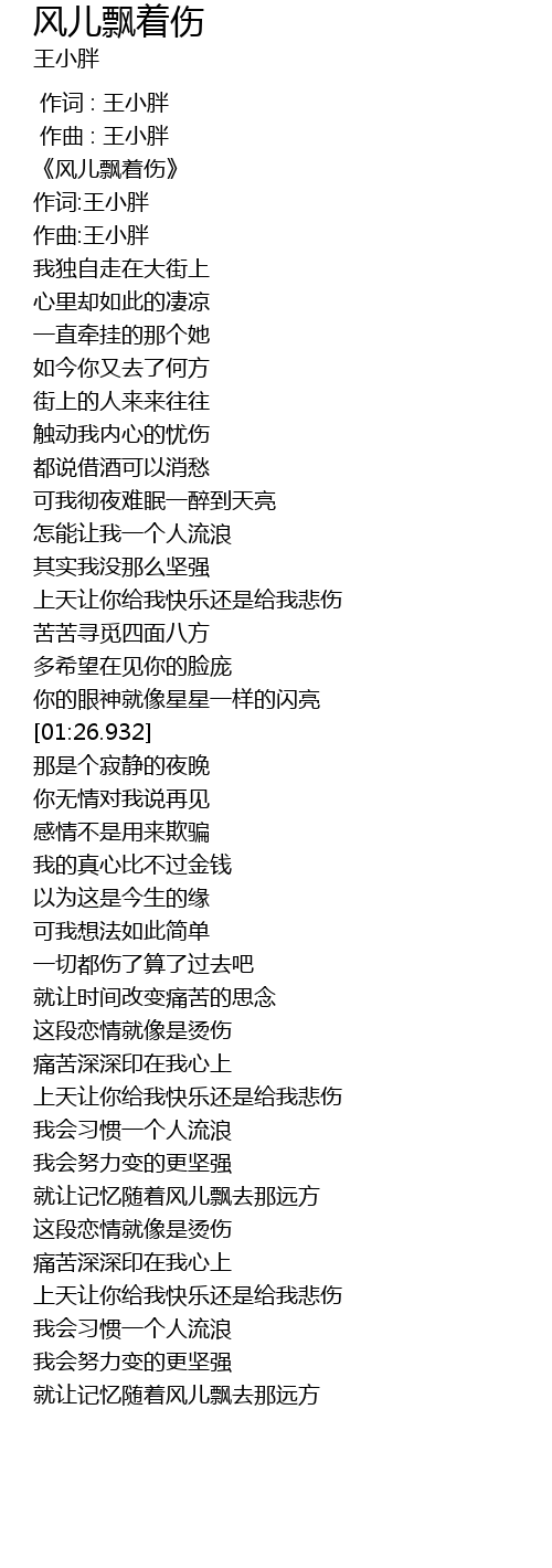 | [00:01.000] | zuò qǔ : wáng xiǎo pàng |