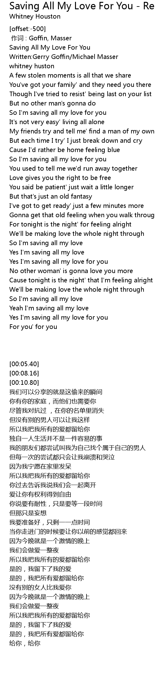 | [00:08.16] | Written: Gerry Goffin Michael Masser |