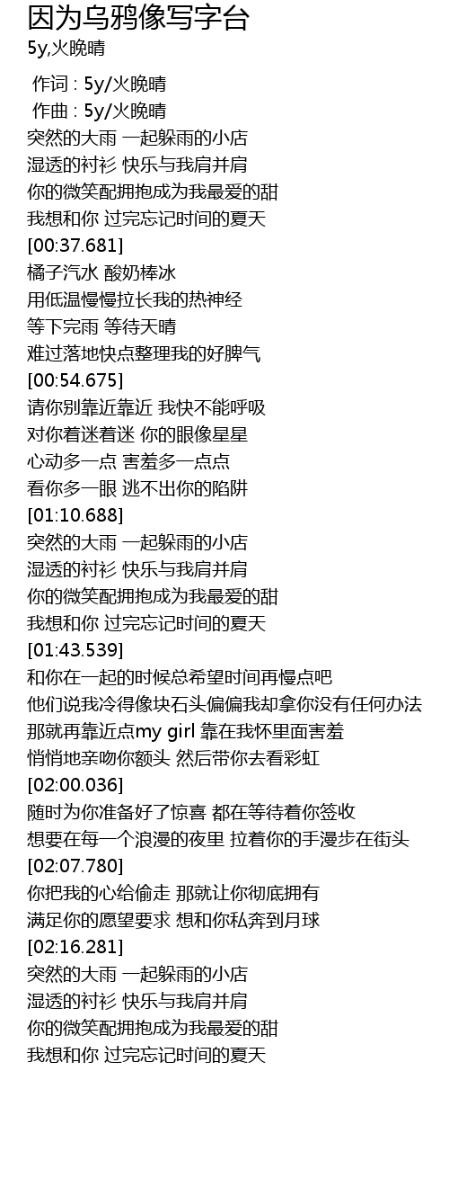 | [00:00.000] | 作词 : 5y/火晚晴 |